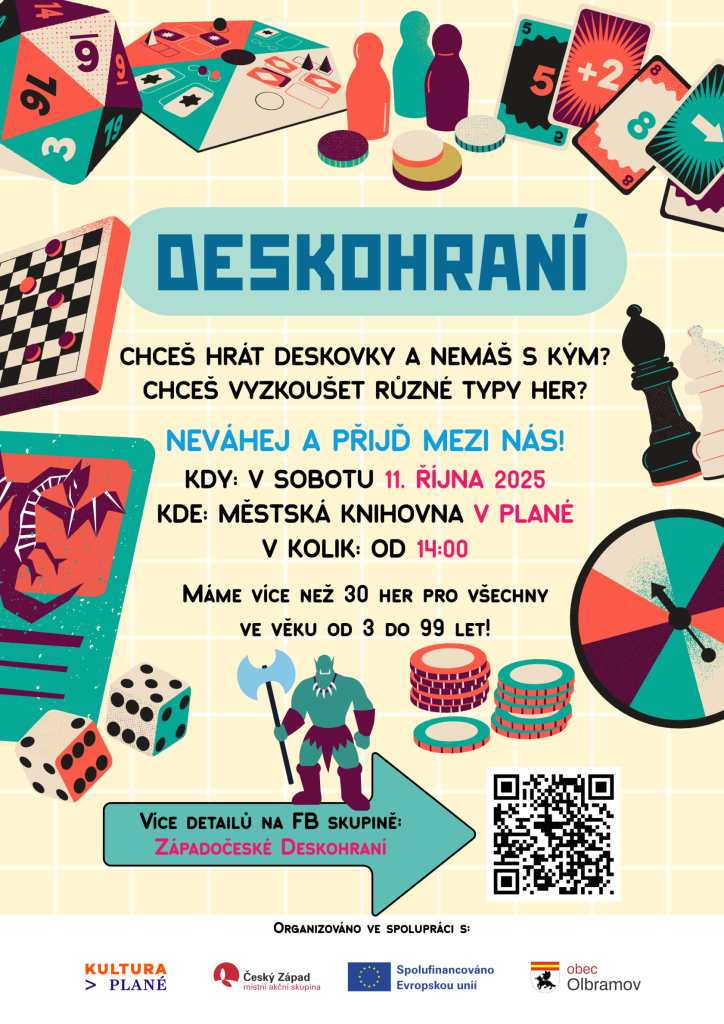 Odpoledne plné deskových her pro hráče od 3 let pod vedením Miroslava Vlacha. Na výběr bude z 30 her pro děti i dospělé.